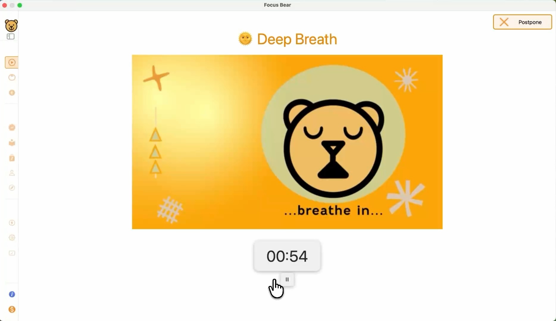 If you’ve ever used other break reminder apps, you might’ve been annoyed by their tendency to interrupt you at the worst possible times: you’re in an important meeting, sharing your screen when a break reminder comes up. “Not now!” We’ve got you covered - Focus Bear detects when you’re in a meeting and won’t show break reminders until you’re done.