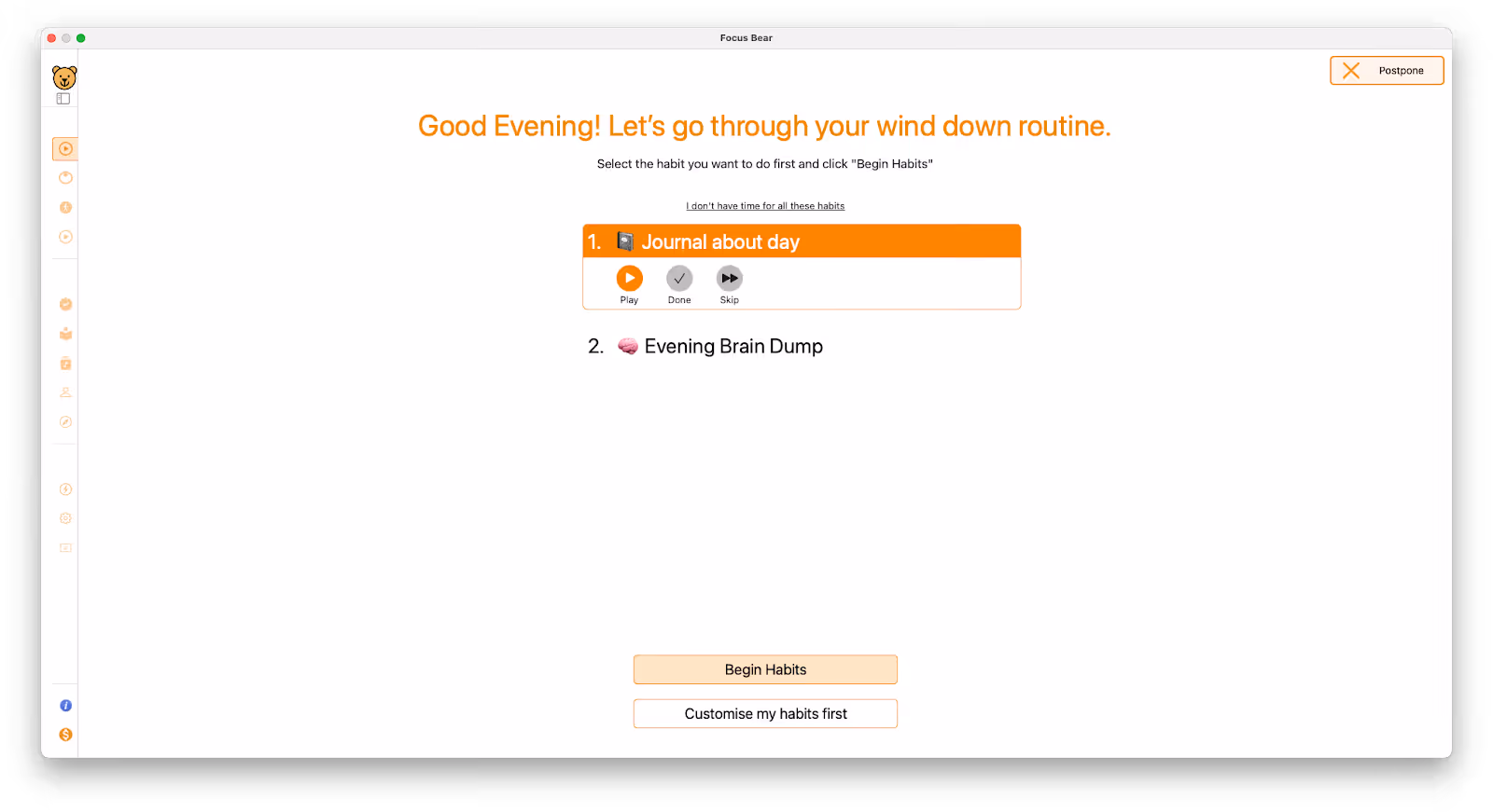 Fixed a flow issue where, after postponing habits and setting an intention, control incorrectly shifted to the To-Do Player instead of Start Focus Session.